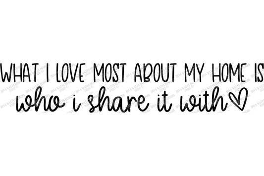 SVG | What I Love Most About My Home Is Who I Share It With | Cutting File | Family | Farmhouse Sign | Vinyl Stencil HTV | Heart | PNG eps