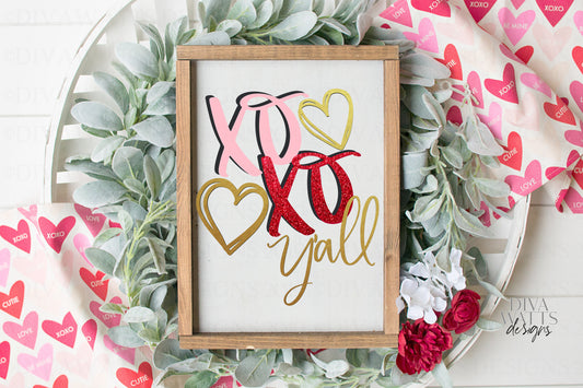 SVG | XOXO Y'all | Cutting File | Doodle Hearts | Valentine's Day | Valentine Love | Sign Shirt Card | Vinyl Stencil HTV | png | Clipart