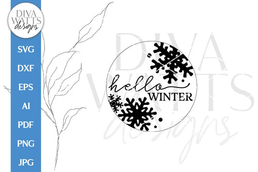 Hello Winter SVG | Snowflakes Christmas Round Design