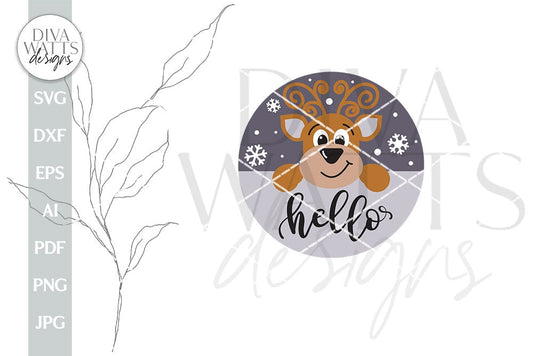 Hello SVG Reindeer Door Hanger SVG Cute Reindeer svg Christmas Reindeer svg Reindeer Sign svg Winter Reindeer svg Welcome Door Hanger svg