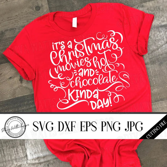 SVG It's A Christmas Movies and Hot Chocolate Kind of Day | Cutting File | DXF | Vinyl Stencil HTV | T-Shirt Sign | Cocoa | png jpg