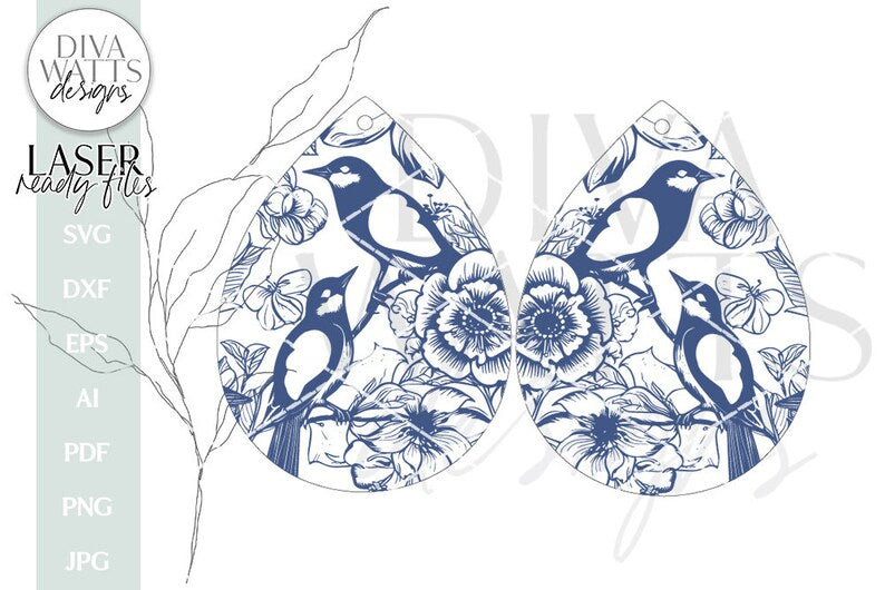 - Bird and Flower Earrings SVG | Tear Drop Laser Earrings | Flowers Dangle Earrings