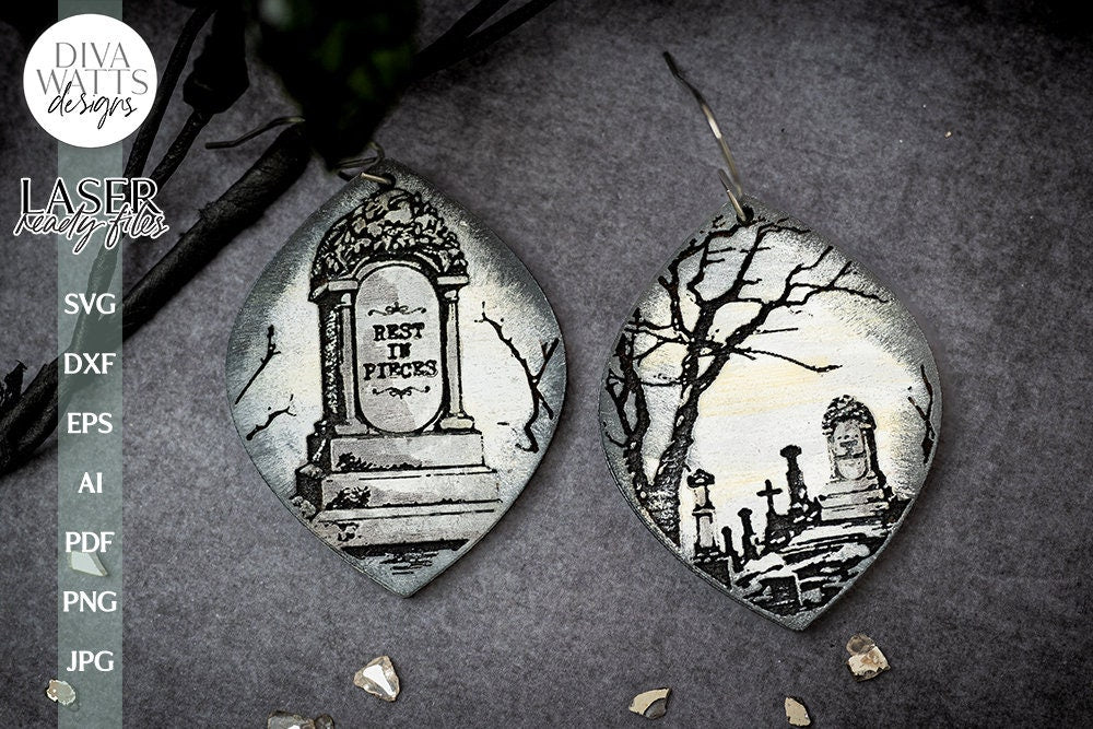 Cemetery Earrings SVG For Laser Earrings With Tombstone for Halloween Earrings For Glowforge Headstone Earrings SVG Halloween Earrings Grave