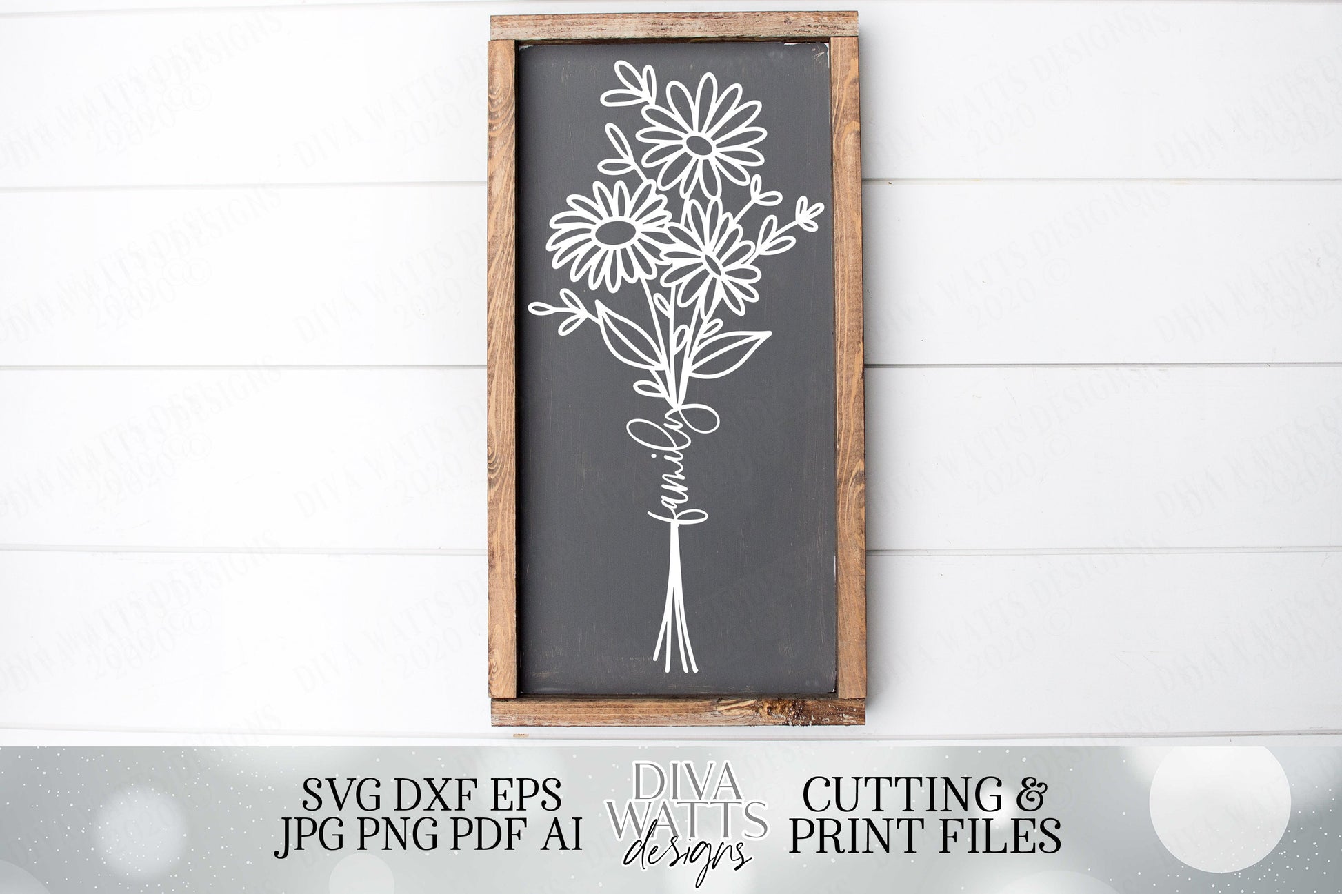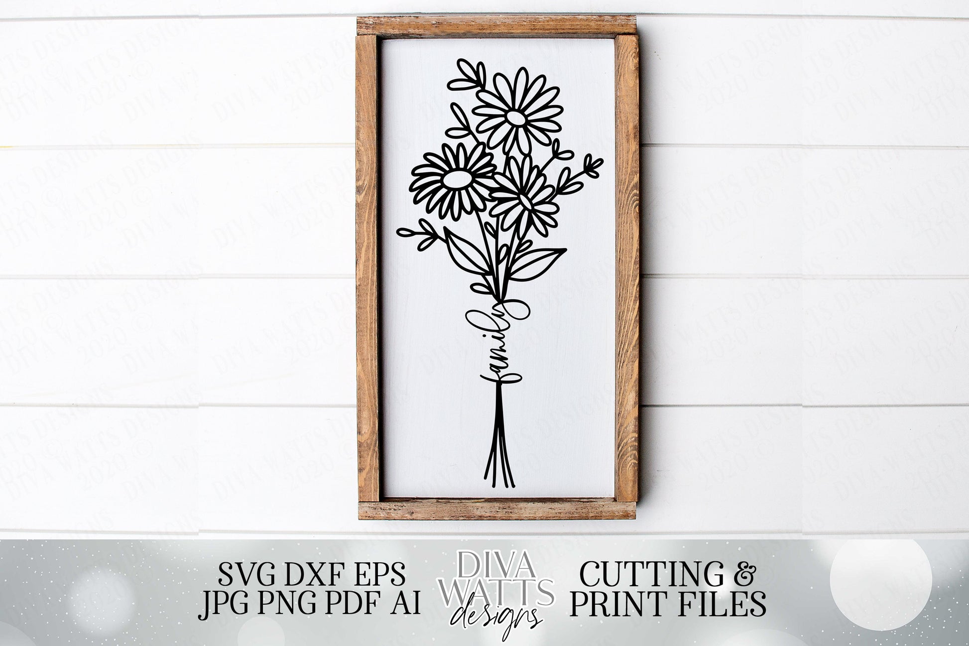 Daisies Bouquet with Family | Farmhouse Sign | Cutting File and Printable | SVG DXF JPG