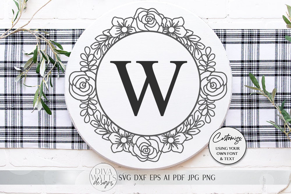 Floral Rose Monogram Wreath SVG | Farmhouse Sign SVG | dxf and more