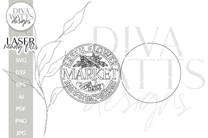 Fresh Flower Market Laser SVG | Glowforge Farmhouse Spring Gardening Round Sign Design | DXF and More