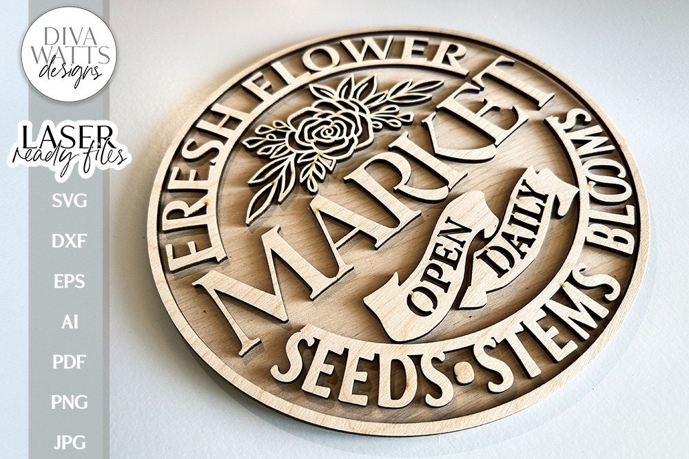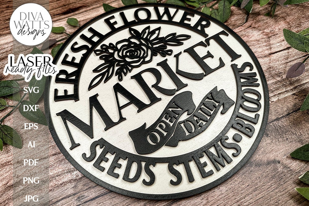 So why wait? Order your Fresh Flower Market Laser SVG today and start creating your own custom round sign that's sure to brighten up your home and bring a touch of springtime cheer to any room!