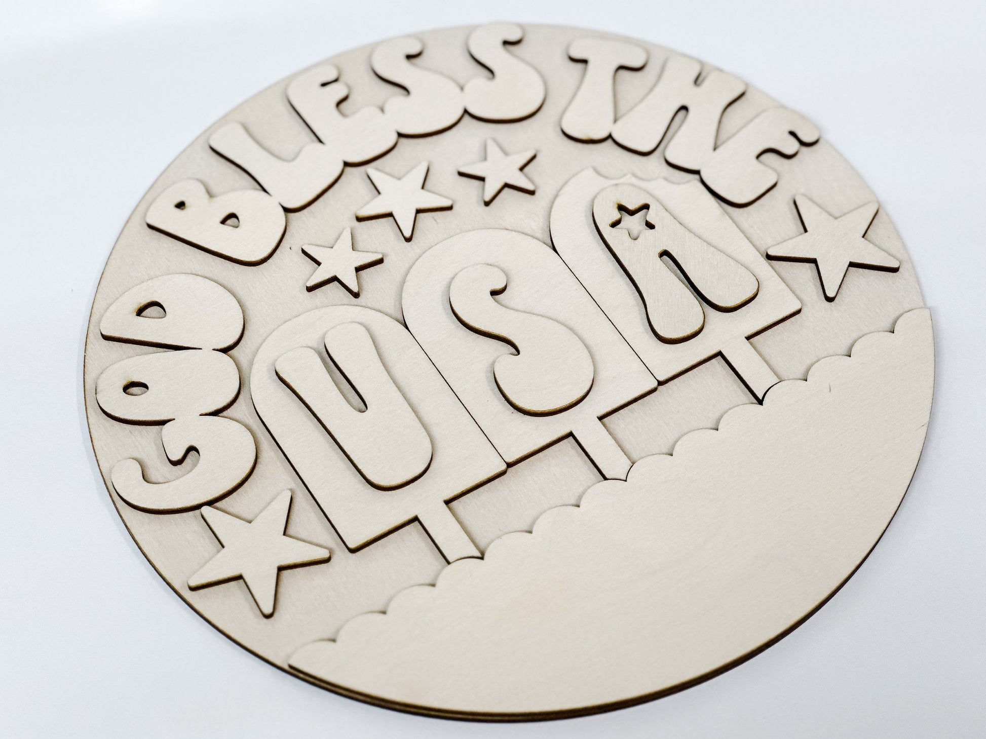 God Bless The USA Laser SVG | Patriotic Home SVG for Glowforge | 4th of July Round Sign Design