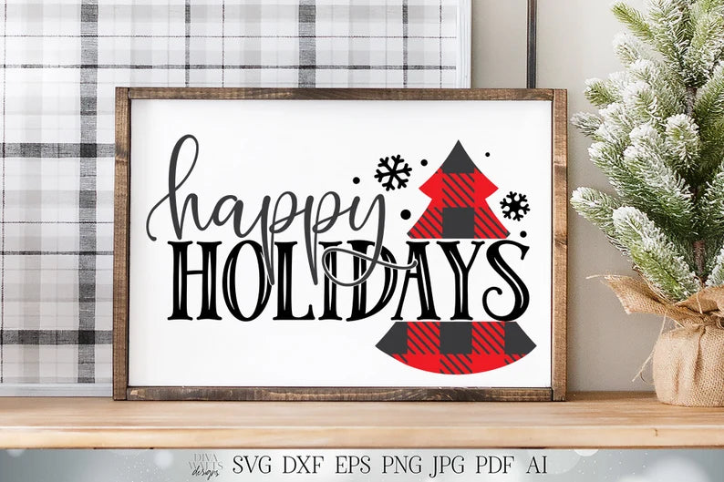 Happy Holidays SVG | Buffalo Plaid SVG | Christmas SVG | Winter svg | dxf and more! | Printable