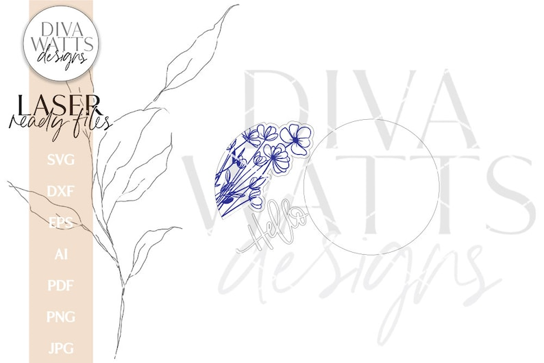 Hello With Wildflowers Glowforge Laser SVG | Floral Door Hanger Design