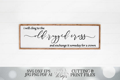 I Will Cling To The Old Rugged Cross And Exchange It Someday For A Crown | Cutting Files and Printables | Farmhouse Christian Sign | SVG DXF
