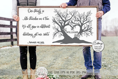 Our Family Is Like Branches On A Tree SVG | Farmhouse Sign Design | Hand Drawn Family Tree | DXF and more!