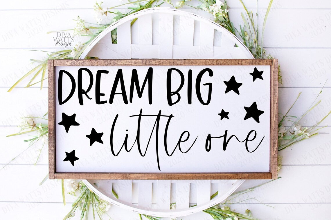 SVG | Dream Big Little One | Cutting File | Nursery | Child | Bedroom | Stars | Vinyl Stencil HTV | Farmhouse Sign | png eps jpg pdf