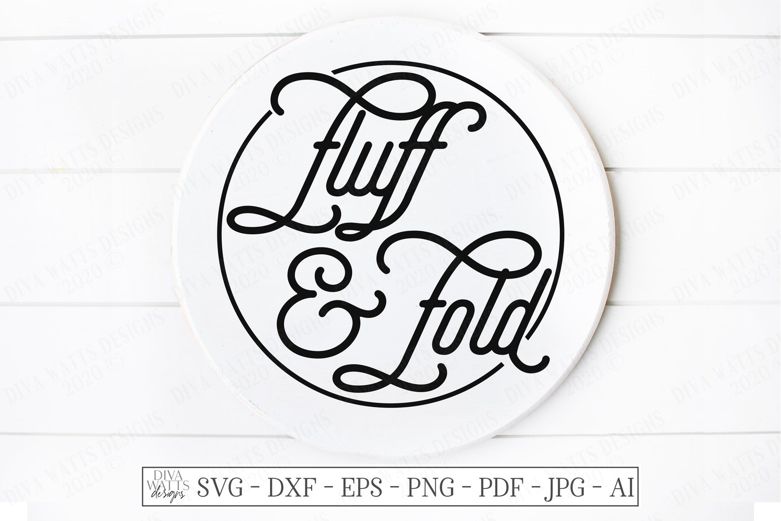 SVG | Fluff and Fold | Cutting File | Laundry Room | Farmhouse Retro Vintage Monoline Script Sign | Round Circle Circular | DXF | Farmhouse