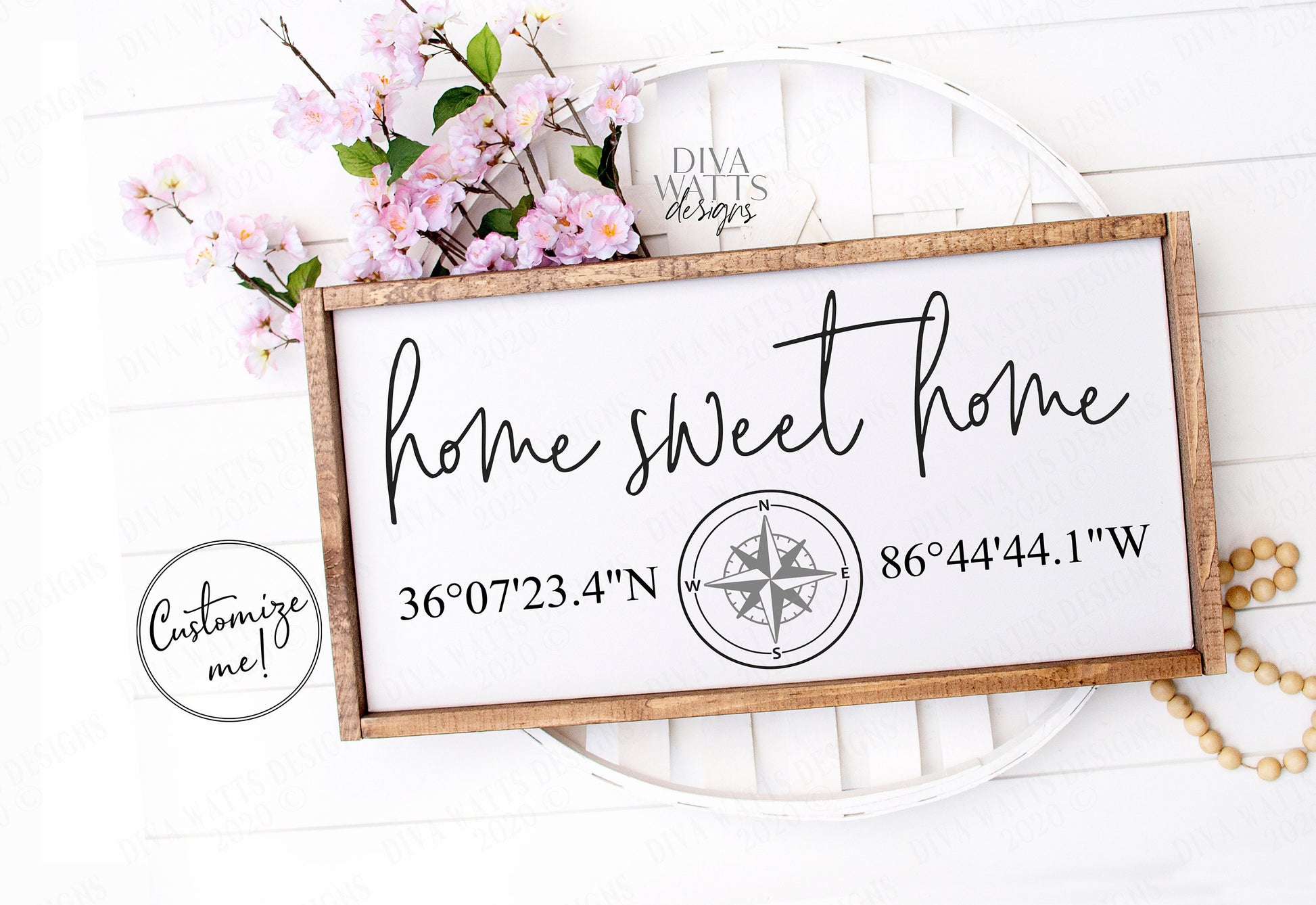 Home Sweet Home features a compass so you can customize the sign for your home!