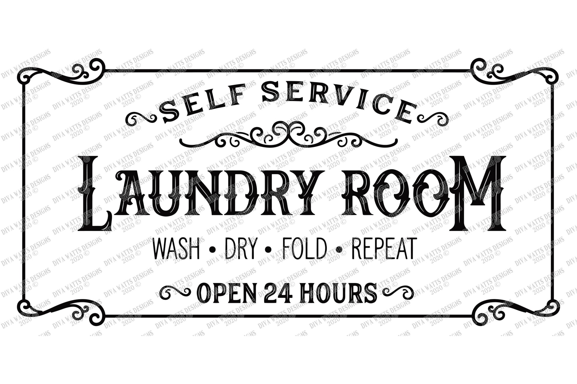 SVG | Laundry Room | Cutting File | Farmhouse Vintage Frame Sign | Self Service | Wash Dry Fold Repeat | Open 24 Hours | Vinyl Stencil
