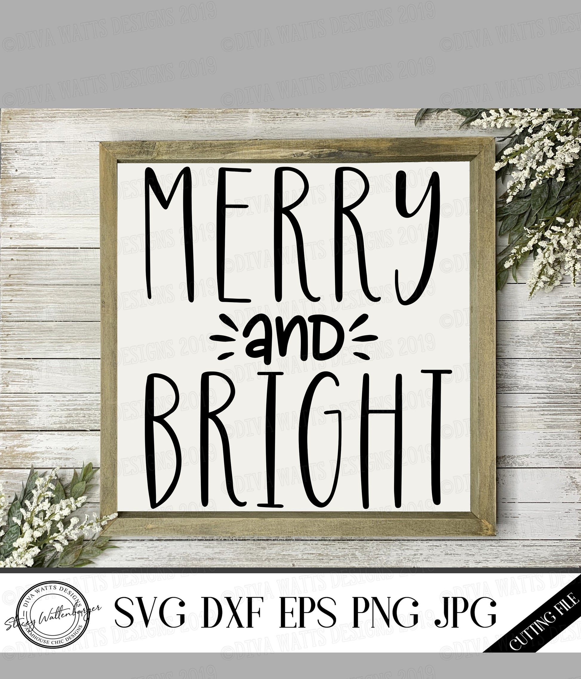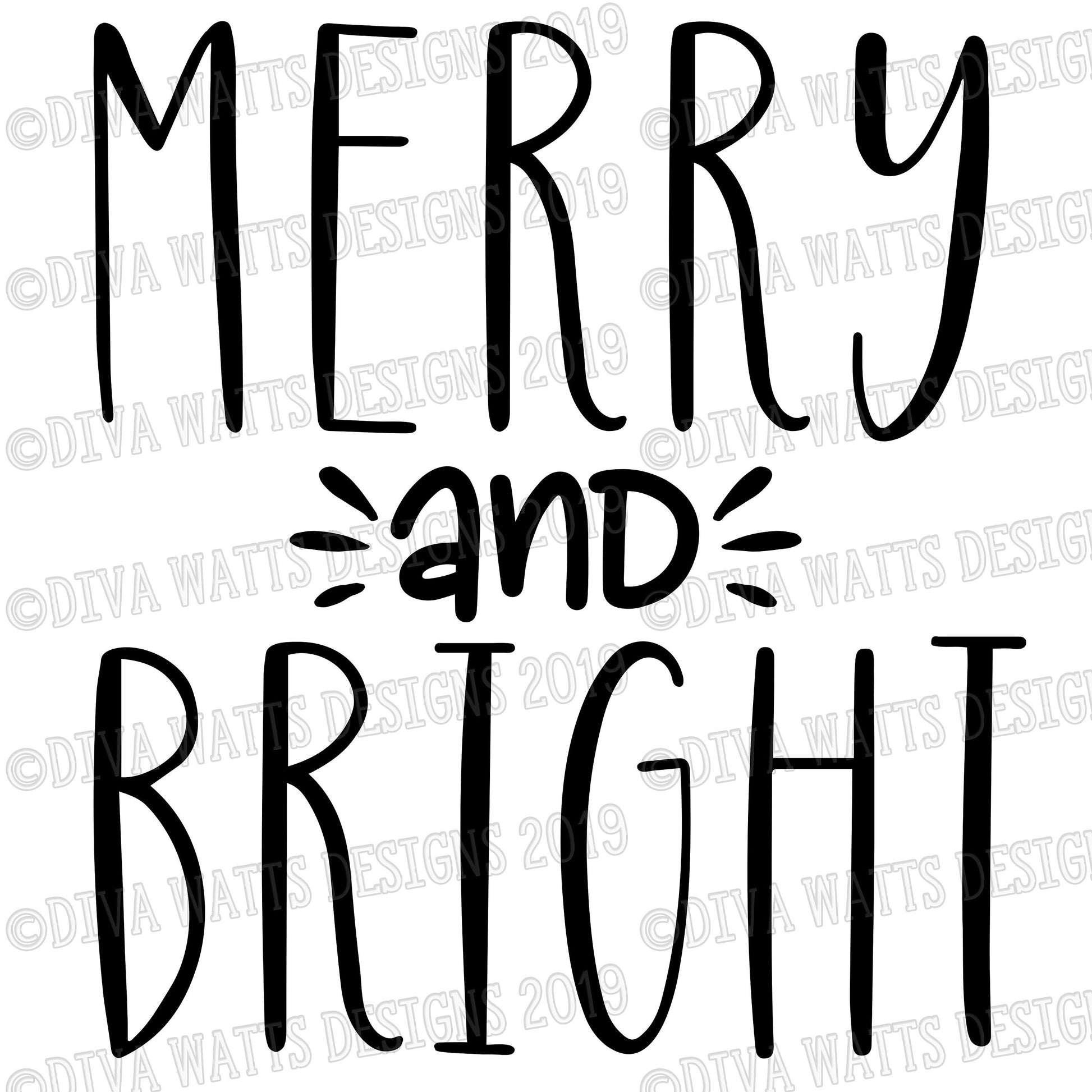 SVG Merry and Bright | Cutting File | Christmas Holiday DXF PNG jpg eps | Sign | Farmhouse Rustic Vintage Style | Skinny Letters