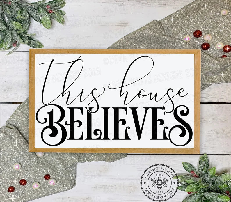 SVG This House Believes | Christmas Cutting File | DXF PNG eps jpg | Vinyl Stencil htv | Clipart Printable | Holiday | Santa | Sign | Cricut