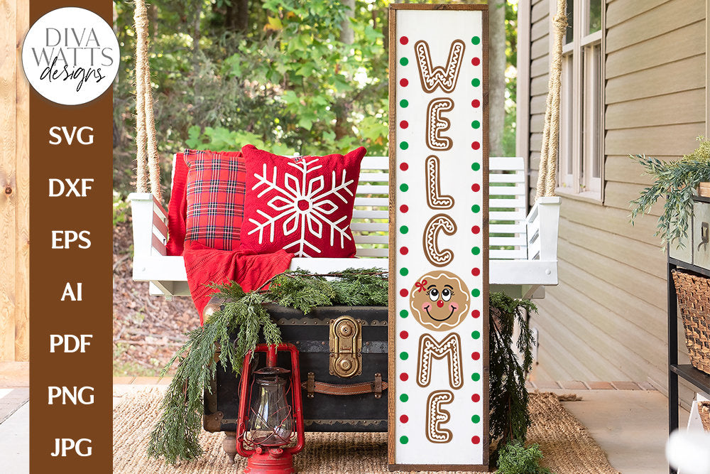 Welcome Vertical Gingerbread SVG | Winter / Christmas Porch Leaner