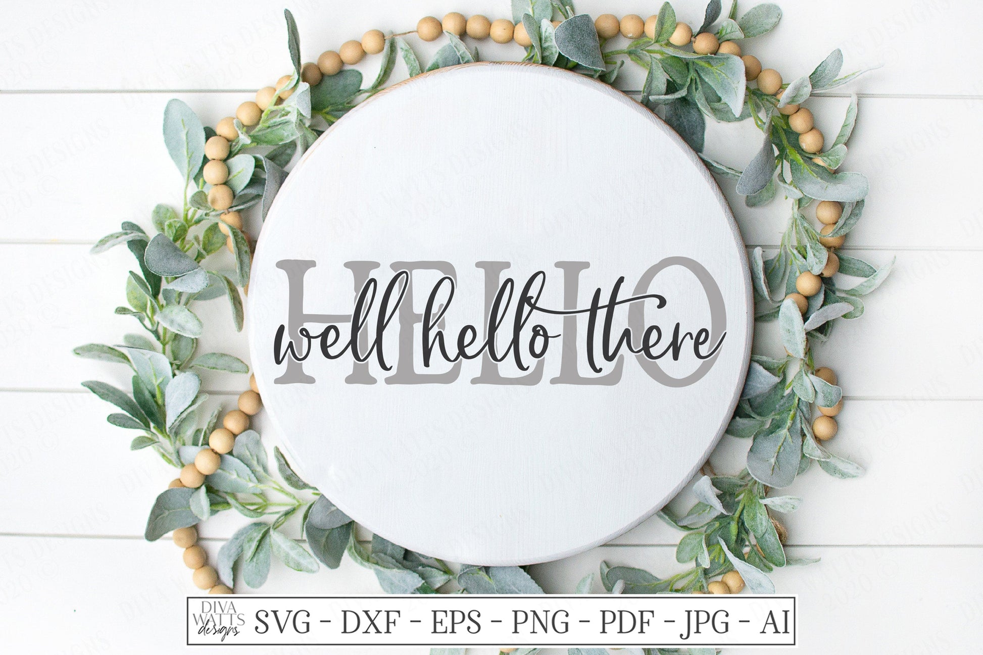 Well Hello There | Cutting File | Vinyl Stencil HTV | Farmhouse Rustic Sign | Greeting | Front Porch | Door | Mat | eps dxf | Welcome